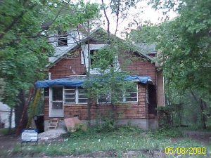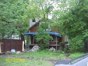 This picture shows the house on 08 May.  Note the new turret on the right side.  The porch on the front is to be removed and a new wraparound porch will be added.